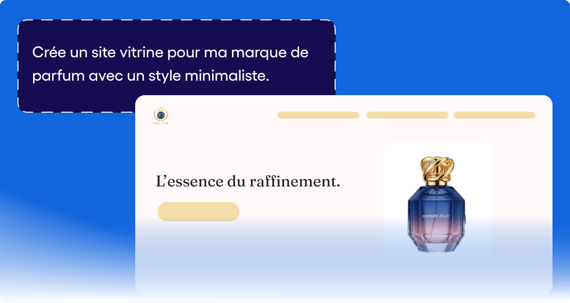 Partagez votre idée en quelques mots et notre IA crée automatiquement la mise en page et les textes de votre futur site. Boutique en ligne, blog ou site pro : lancez votre projet en un clin d’œil.